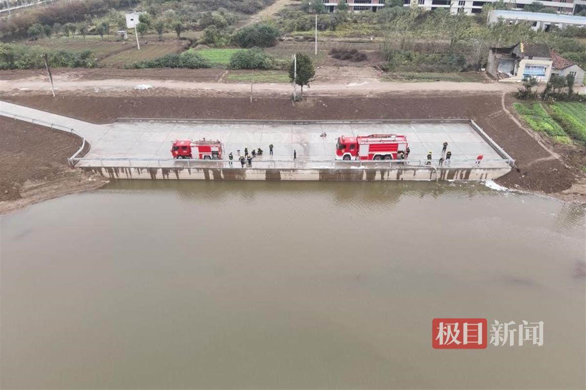 据介绍,该消防取水点综合考量了交通承载、取水便利、救援时限等因素,于开发区公安大道东清河大桥南、杨麻水库东岸确定了建设位置,设有长度60米、宽度18米的消防取水平台,可同时供三台消防车进行取水。