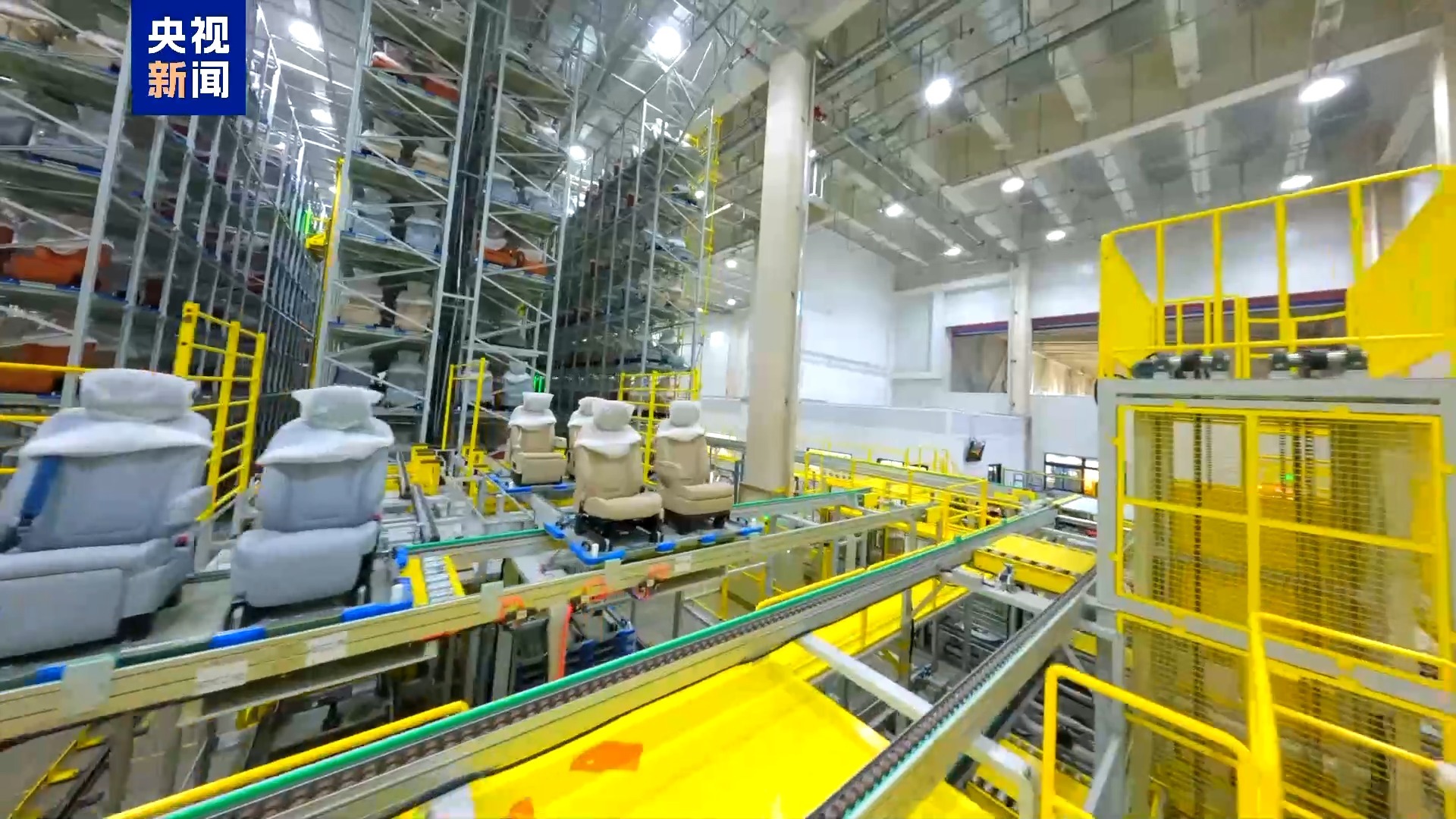 一台台座椅生产出来直接传送至一旁的立体化仓库,每天几千台的产量,按照订单当天就能周转完毕。