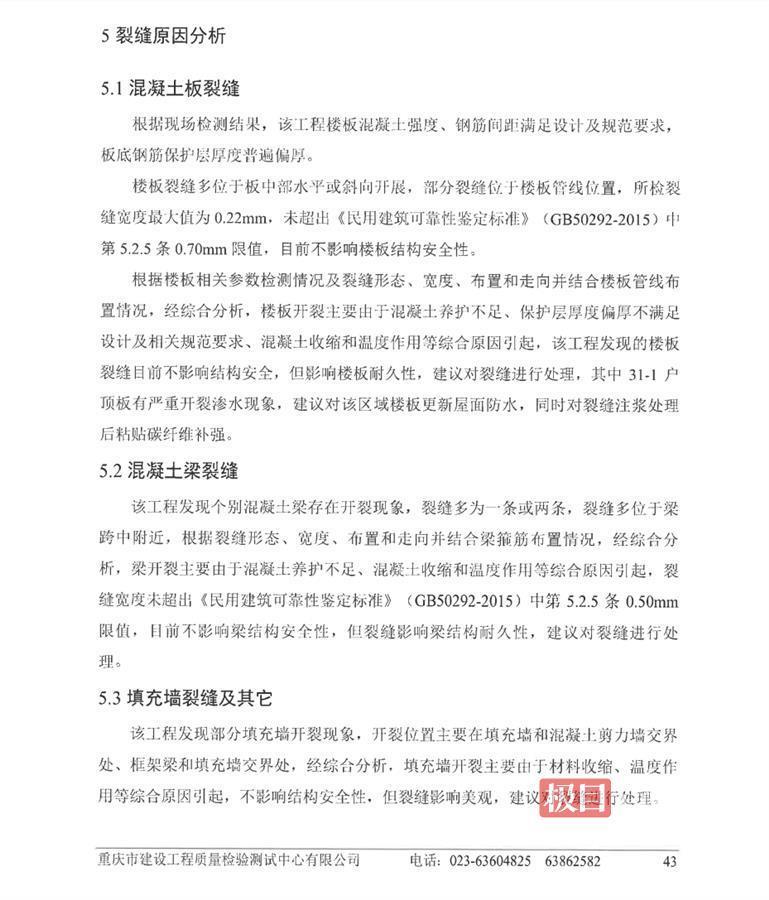 鉴定报告称裂缝目前不影响结构安全