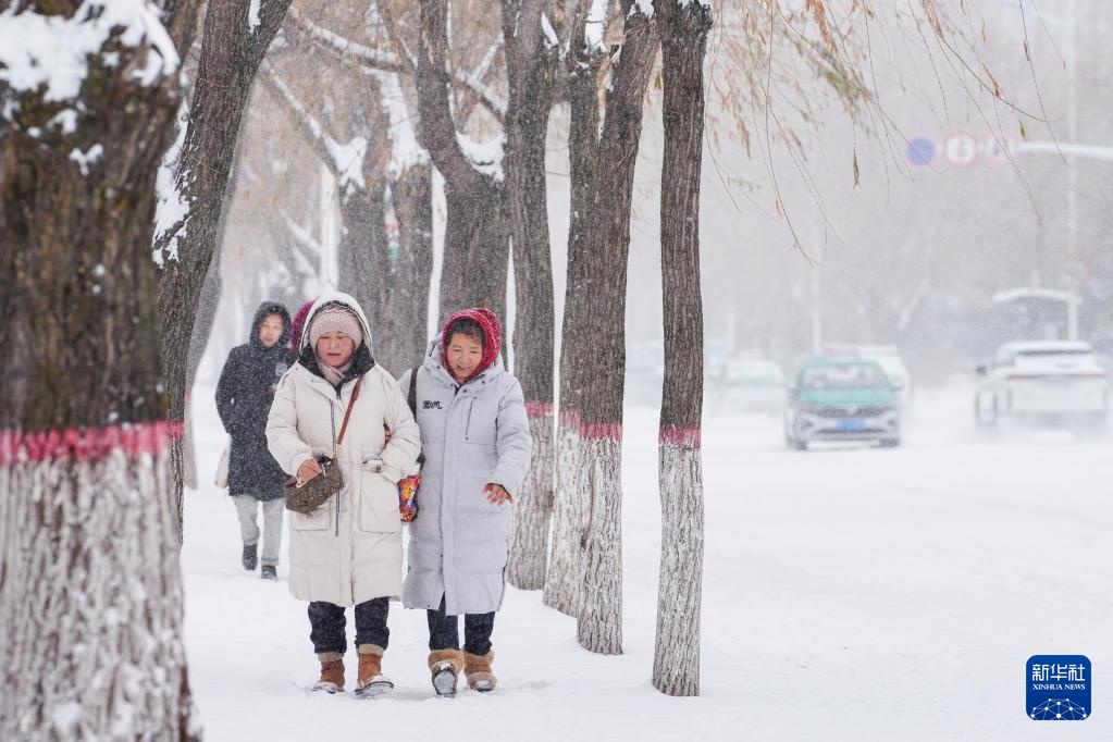 11月26日,市民在大兴安岭地区加格达奇区冒雪出行。