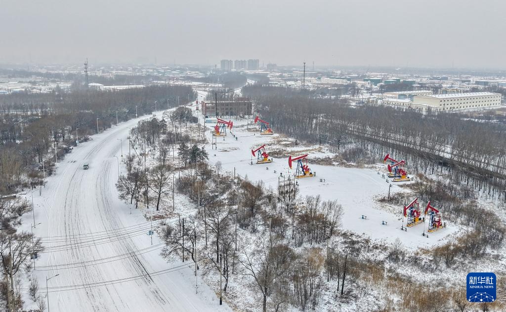 11月26日拍摄的大庆油田一处采油平台(无人机照片)。