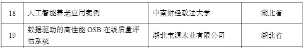 湖北2个案例入选名单,分别为中南财经政法大学“人工智能养老应用案例”、湖北宝源木业有限公司“数据驱动的高性能OSB在线质量评估系统”。