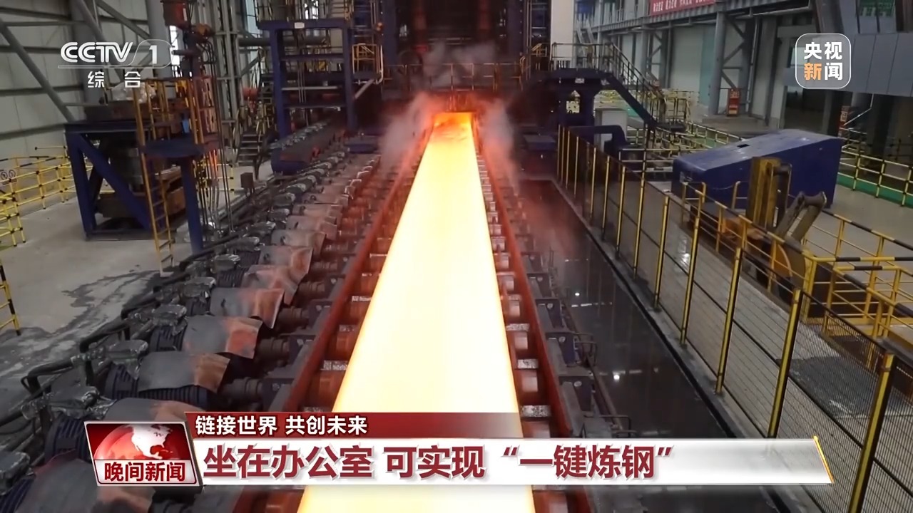 钢铁冶炼要经过一百多道工序,最直观的感受就是智能。比如在转炉作业区,这里实现了“一键炼钢”,颠覆了传统的炼钢模式。天车吊装着1500℃的铁水,精准倾倒进炼钢转炉,相比过去,炼钢时间比过去缩短了10%以上,降低了热损耗,节约了成本。
