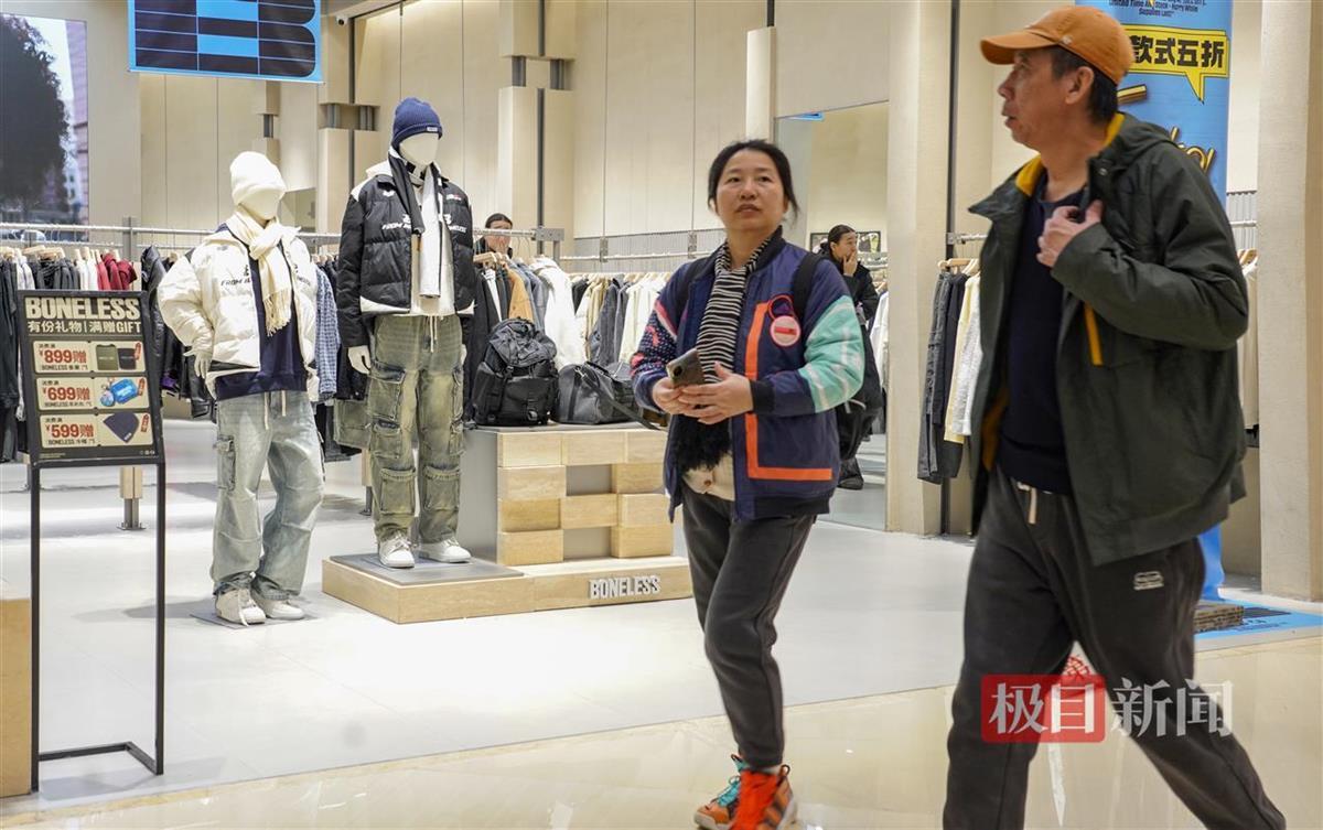 11月28日,极目新闻记者走访了汉口多福路上的多家商铺,看到专营棉鞋、棉帽、棉服的店铺内消费者络绎不绝,呈现出一番热销景象。在商品摆放区,顾客们认真挑选着适合自己的冬装。一位正在挑选棉服款式的市民告诉记者:“今年天气冷得晚,感觉会是个暖冬,准备先买两件棉服穿穿。”