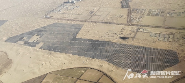 11月26日,俯瞰位于洛浦县的一处光伏阵列。