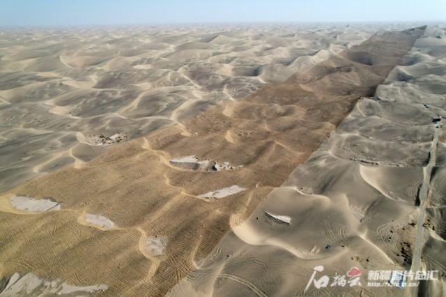 一年多来,“锁边”任务涉及的喀什、和田、巴音郭楞蒙古自治州多地因地制宜、分类施策,通过生物治沙、工程固沙、光伏治沙多措并举,顺利实现锁边“合龙”。