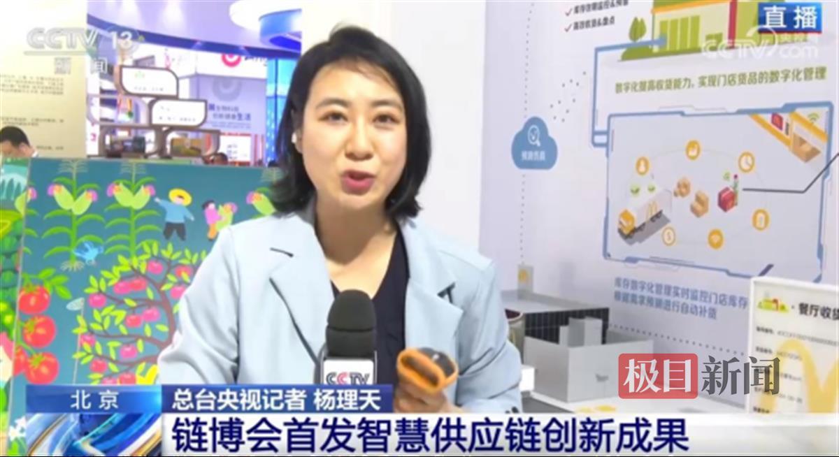 “一箱一码”技术,保障食品安全。直播中,记者展示了麦当劳在产业园内推广的“一箱一码”技术。