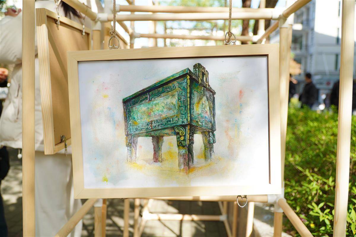 展览现场,卷轴、画架、立体装置错落有致,金色光辉为浓郁色彩注入灵魂,画中绚烂的色彩将太行美景跃然纸上。据了解,此次共展出优秀写生作品124件,且展出形式打破传统,展台运用卷轴、立体装置等创意形式与周边树木、走廊巧妙融合,为观众呈现别具一格的观展体验。