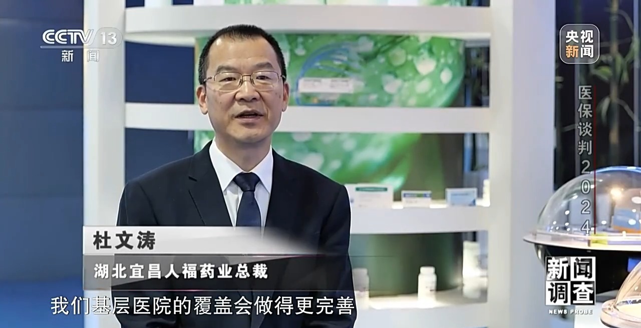 湖北宜昌人福药业总裁 杜文涛:它的可及性会更好,因为现在我们知道,医院进药现在是比较严的,没有医保准入或国谈这样一个身份的话,这个品种进院会非常难。我们是去年年初获批的这样一个产品,到目前为止,在相应的一些目标医院的覆盖率只有不到20%,我们很多家长要带着患儿到省级以上的这样一些大医院里面去就医去开药。进医保以后,我们基层医院的覆盖会做得更完善,那么在基层他就能够很方便地能够获取这个药,能够得到这样的一个有效的治疗。