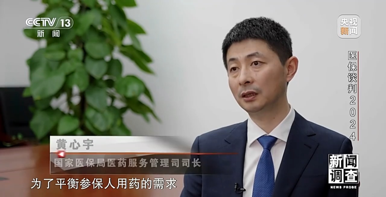 国家医保局医药服务管理司司长 黄心宇:当时的核心是为了平衡参保人用药的需求,医保基金的承受能力以及企业创新的合理回报这三方面的利益。