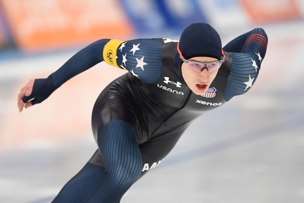 11月30日,美国选手斯托尔兹在比赛中,他以1分07秒62的成绩获得金牌。新华社记者 鞠焕宗 摄