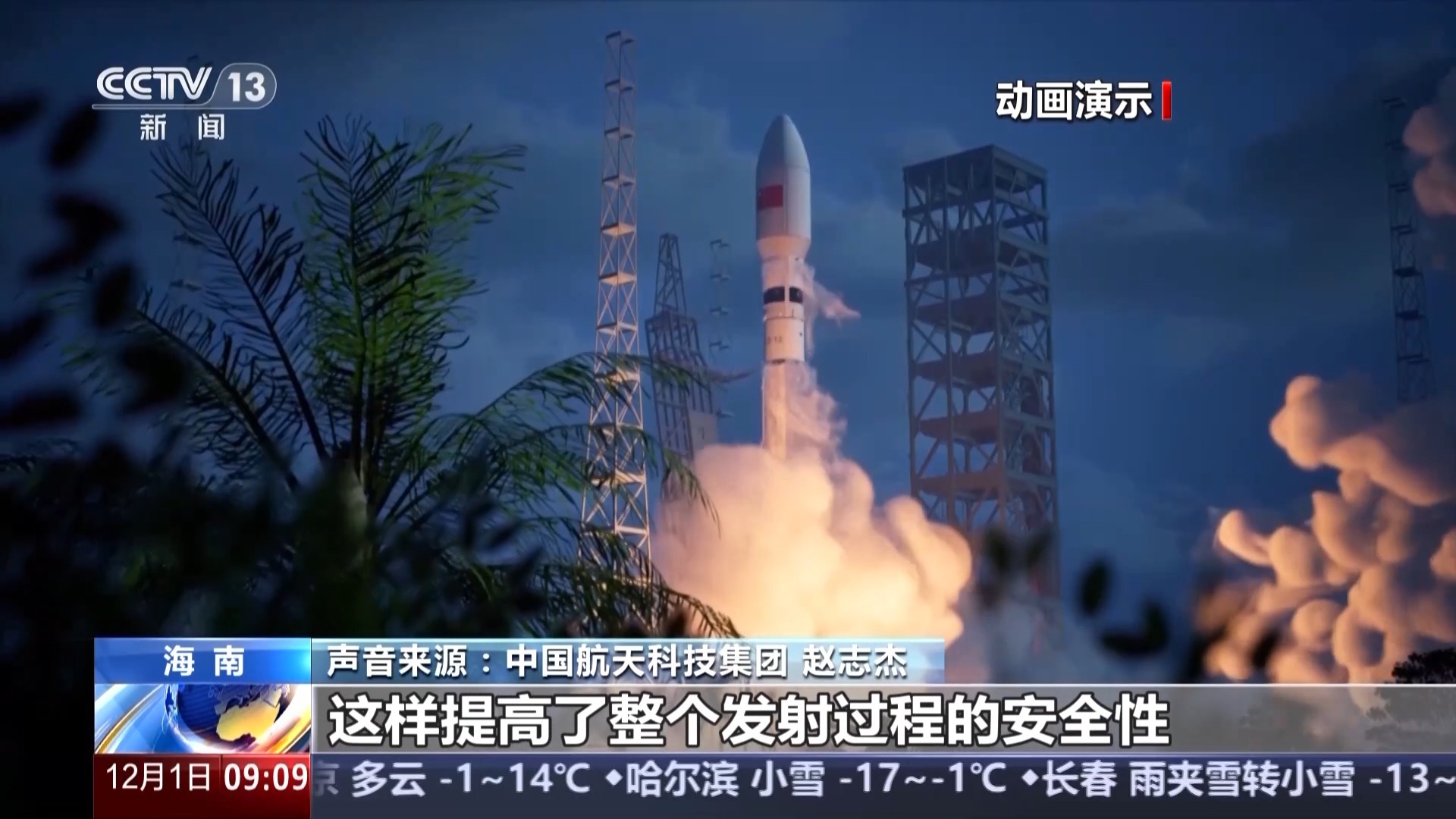 中国航天科技集团 赵志杰:为了提高发射的安全性,我们配置了牵制释放机构,这也是我们国家首次采用这种模式,就是在推力建立稳定之前,通过故障诊断来判断推进系统是正常的。在这之前是牵制住,正常了以后再释放打开,这样提高了整个发射过程的安全性。