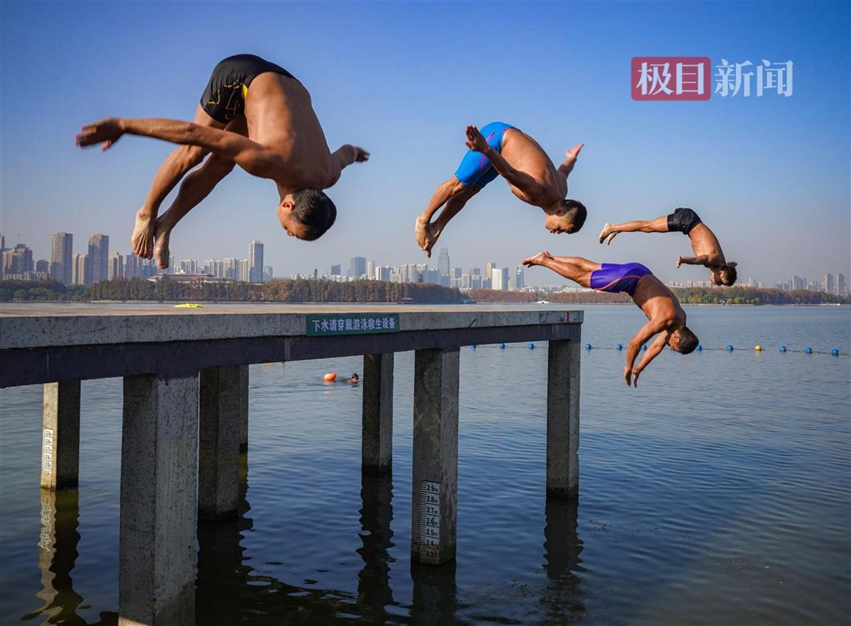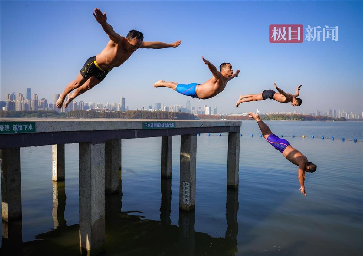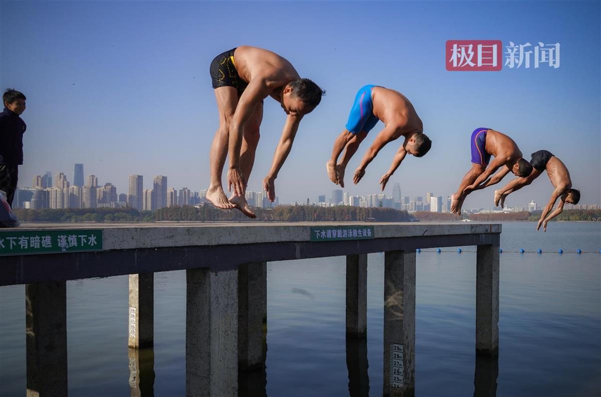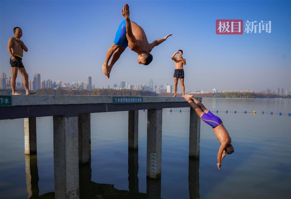 12月1日,武汉东湖凌波门在冬日暖阳的照耀下,迎来了一群勇敢的跳水爱好者。尽管寒意浓浓,但这些爱好者们却选择以跳东湖的方式,感受这个季节的独特魅力。