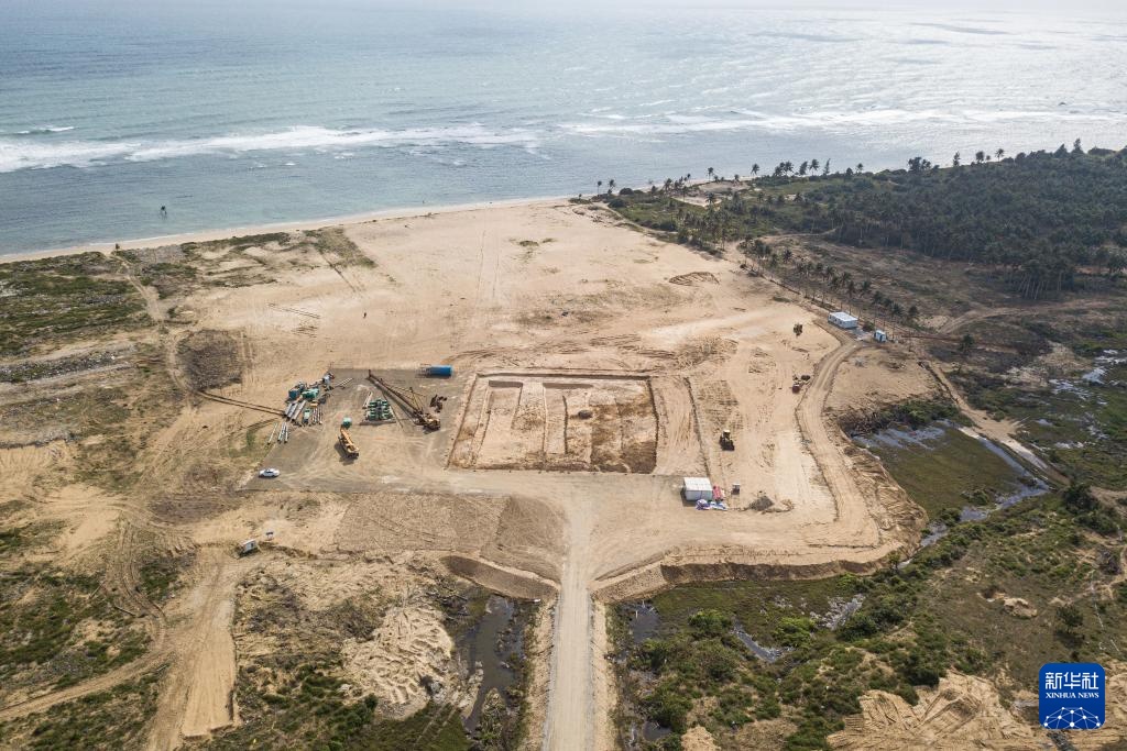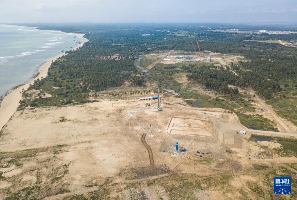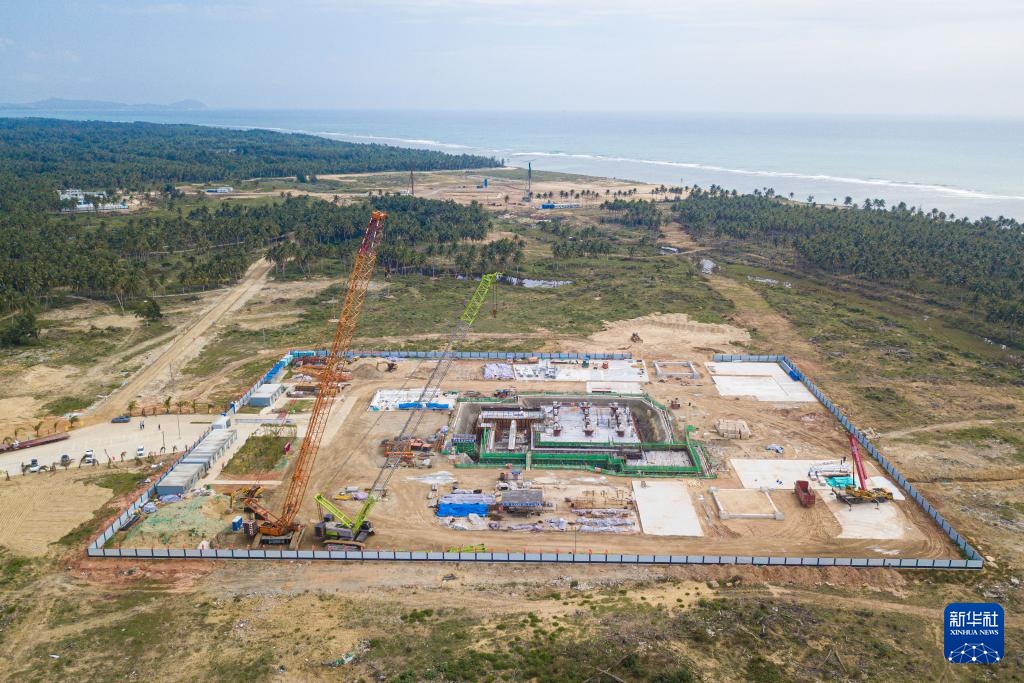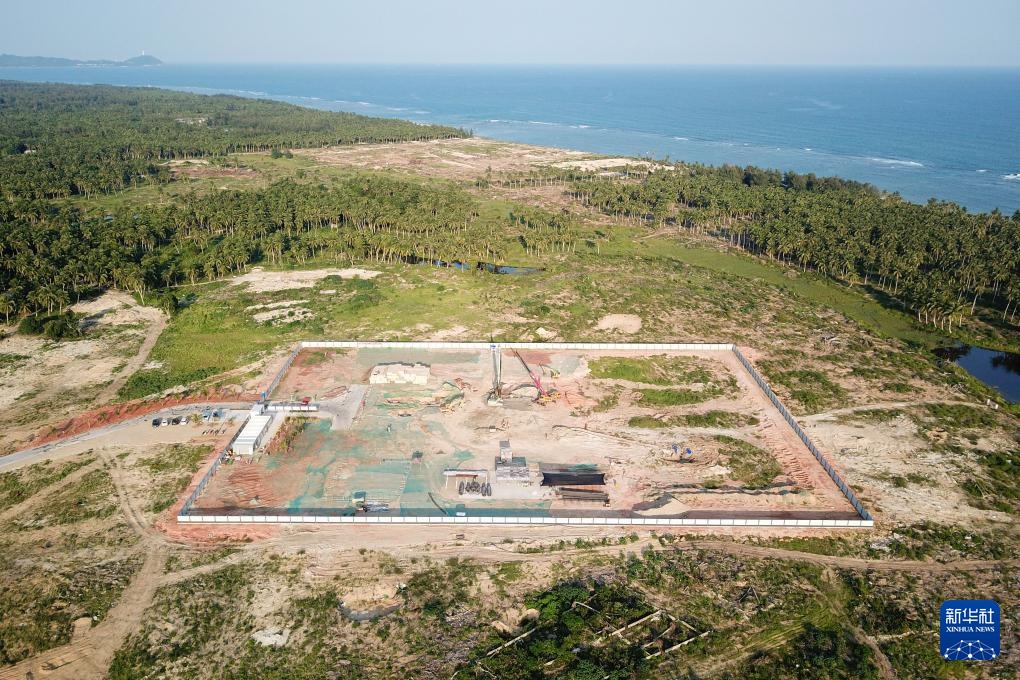 在海南文昌拍摄的建设中的海南商业航天发射场一号发射工位,不远处的空地即是二号发射工位所在地(无人机照片,2022年9月17日摄)。