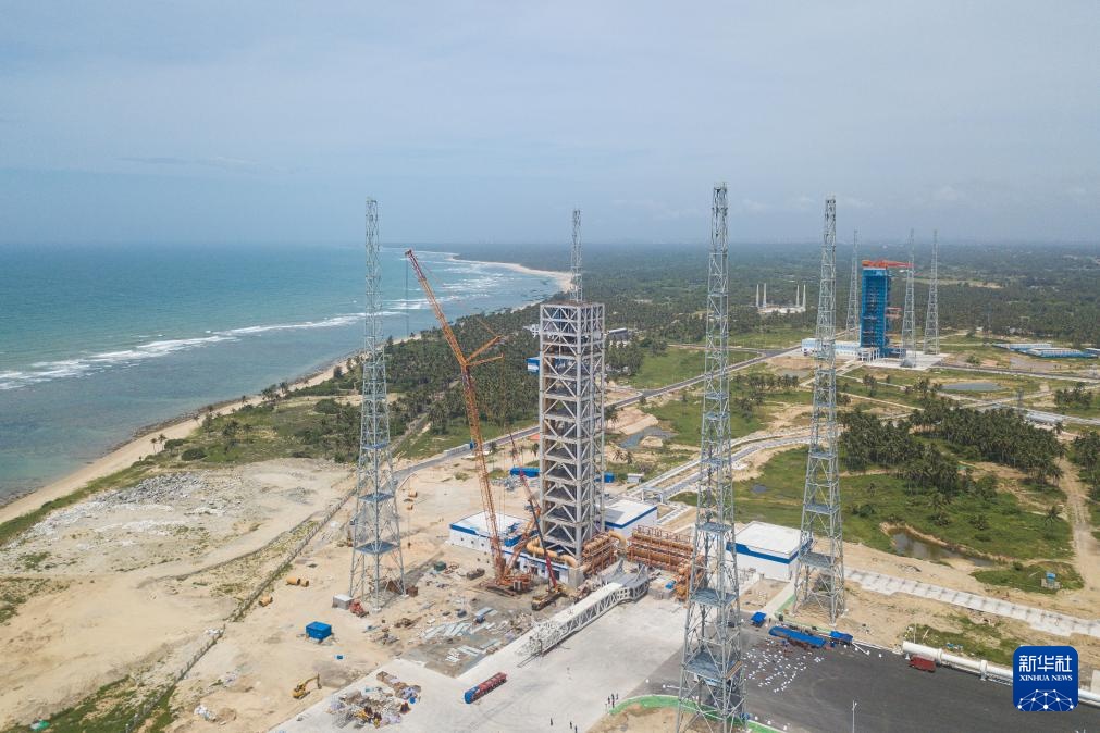 在海南文昌拍摄的建设中的海南商业航天发射场二号发射工位(无人机照片,2022年12月28日摄)。