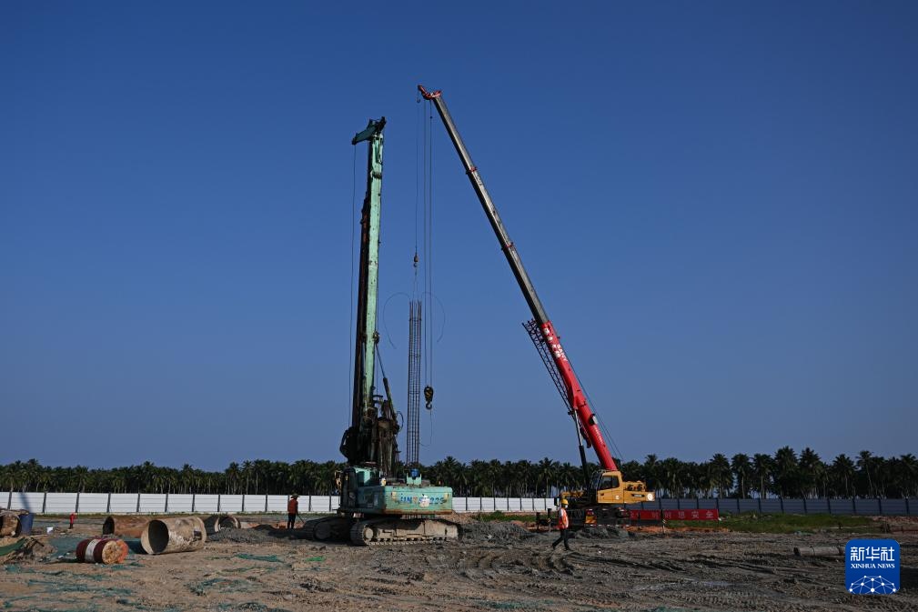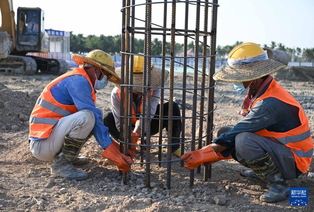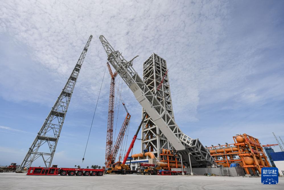 工人在海南文昌建设海南商业航天发射场一号发射工位(2022年9月17日摄)。