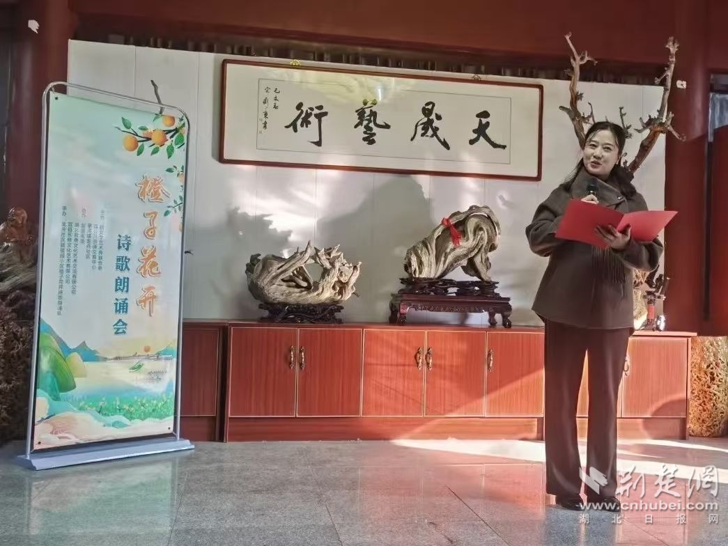 荆楚网(湖北日报网)讯(通讯员简飞月)12月1日下午,由秭归县文联、县公共资源交易中心、龙舟社区及县图书馆等单位联合开展的“橙子花开”诗歌朗诵会在该县天晟艺术馆举行,吸引社区居民及诗歌爱好者60多人共同参与。