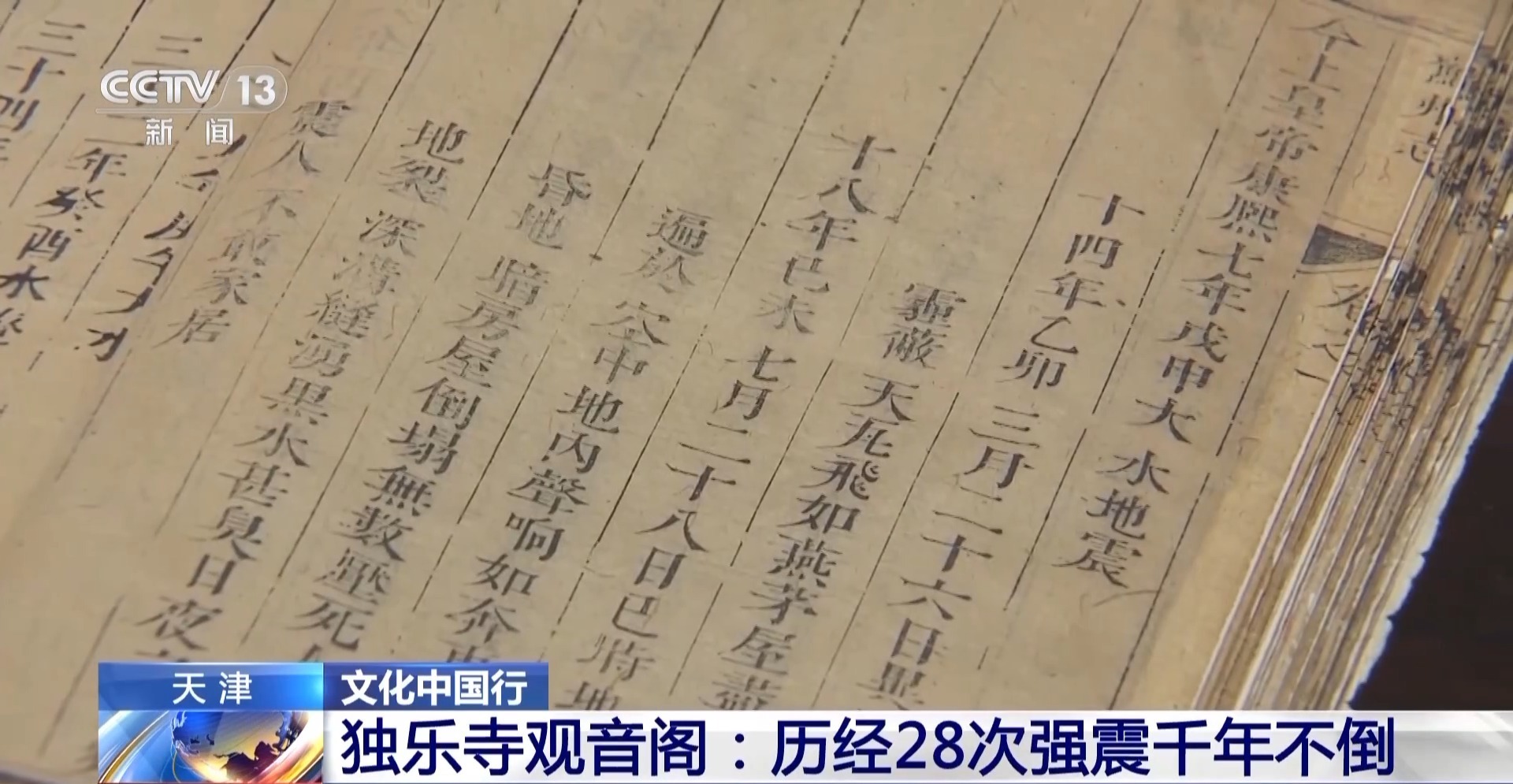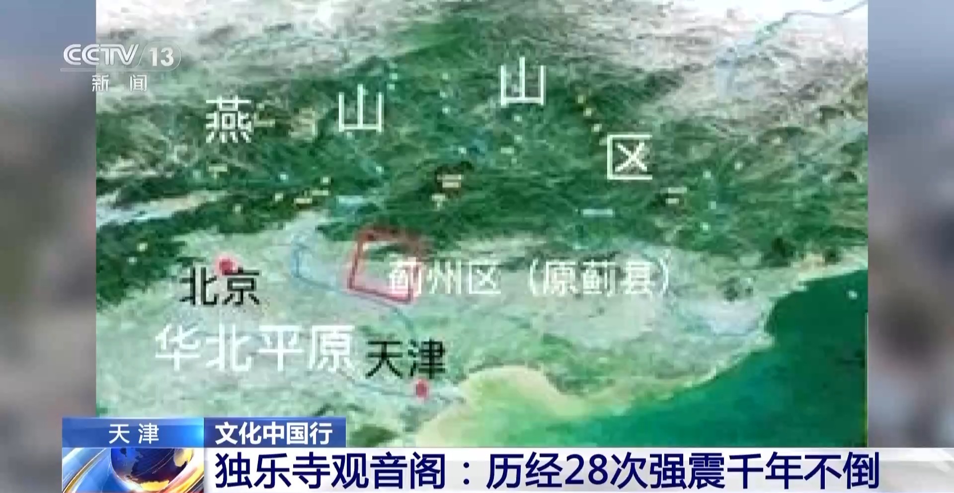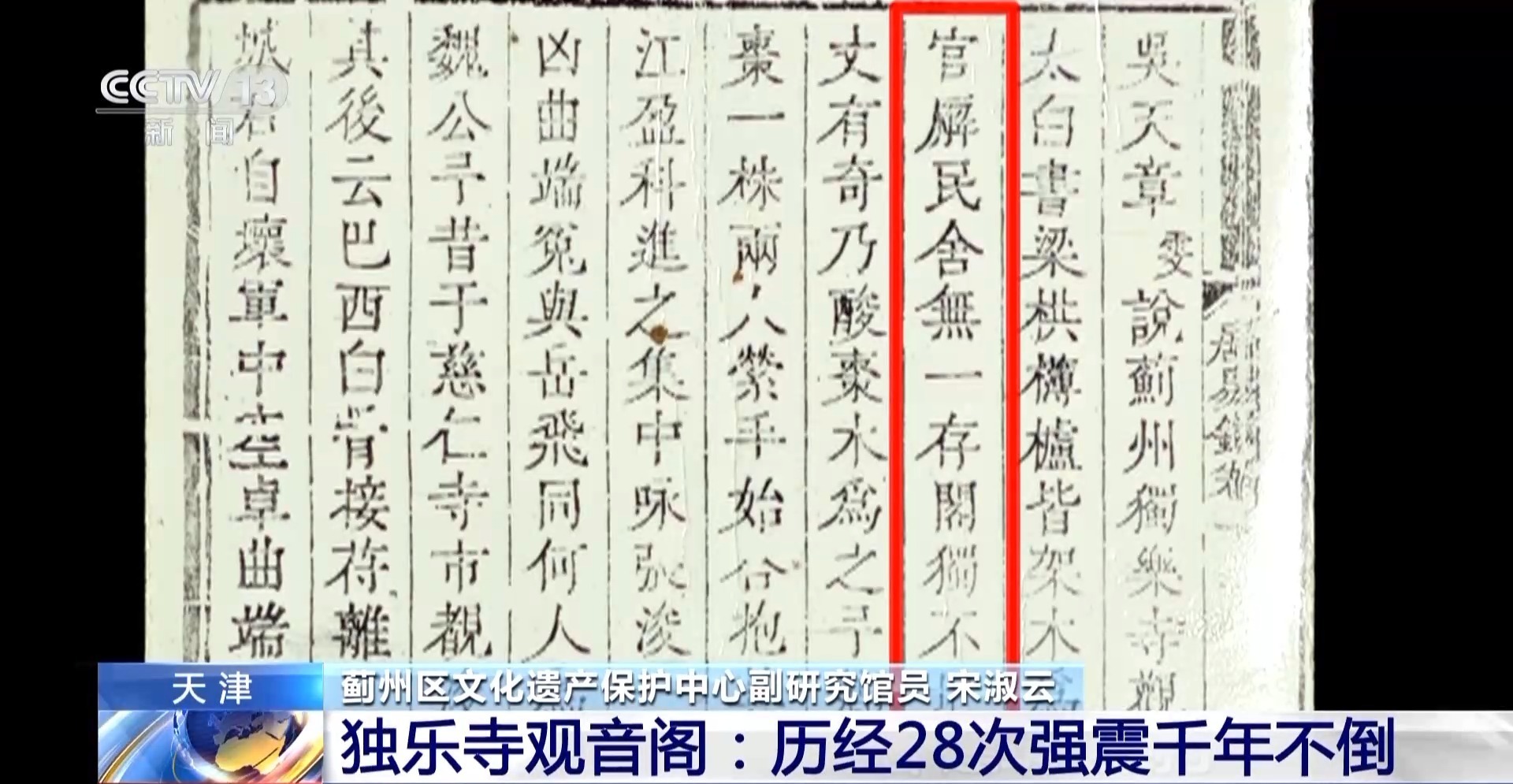 蓟州区文化遗产保护中心副研究馆员 宋淑云:“巳末地震,官懈民舍无一存,阁独不坯”,“阁”指的就是观音阁。按这个记载,当时很多的民居建筑全倒了,只有大阁在这屹立不倒。