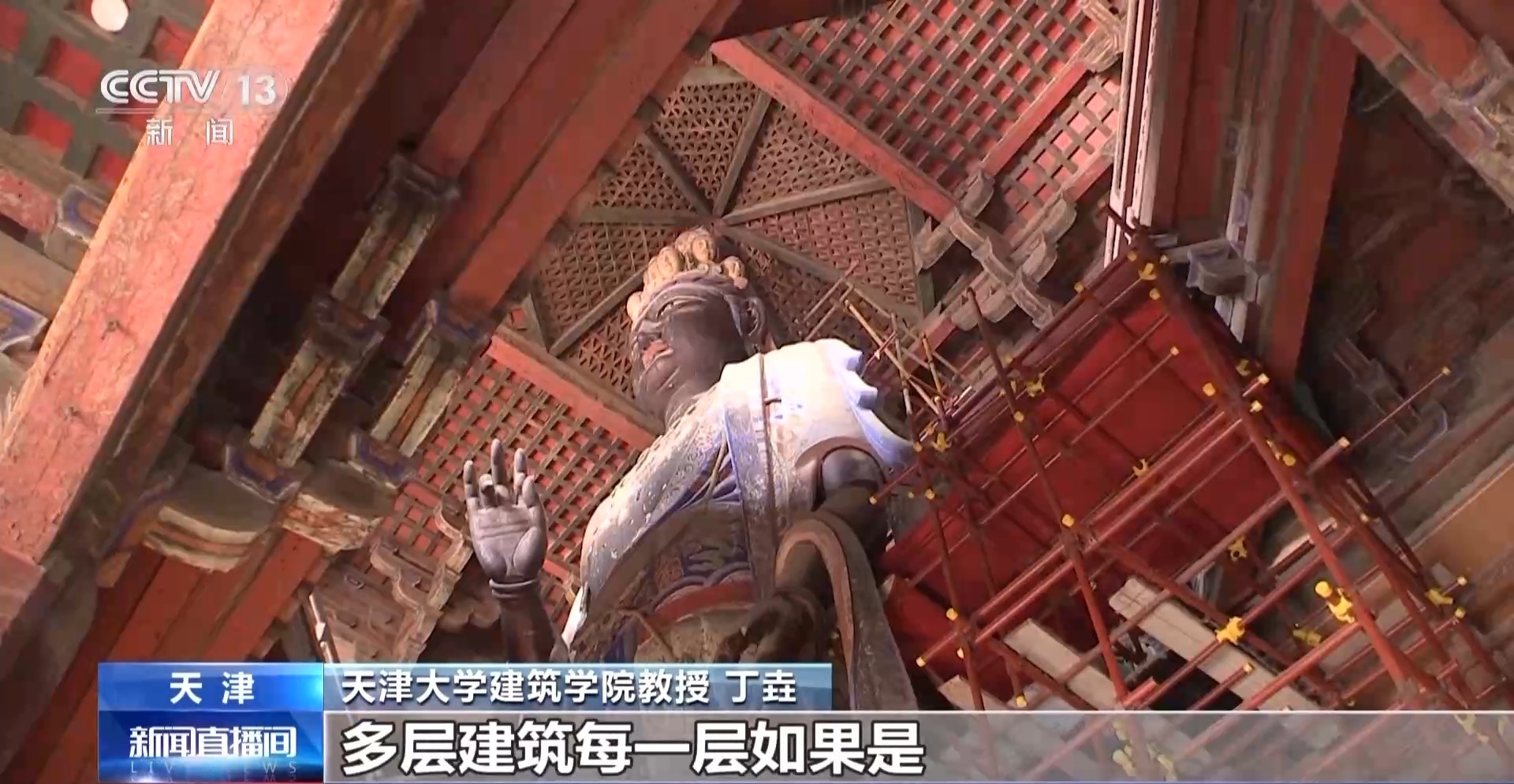 天津大学建筑学院教授 丁垚:独乐寺观音阁六角井的设计是非常高明的,多层建筑每一层如果是几何形状相似相同的时候,整体性就不如每一层的几何形状各不相同的建筑。