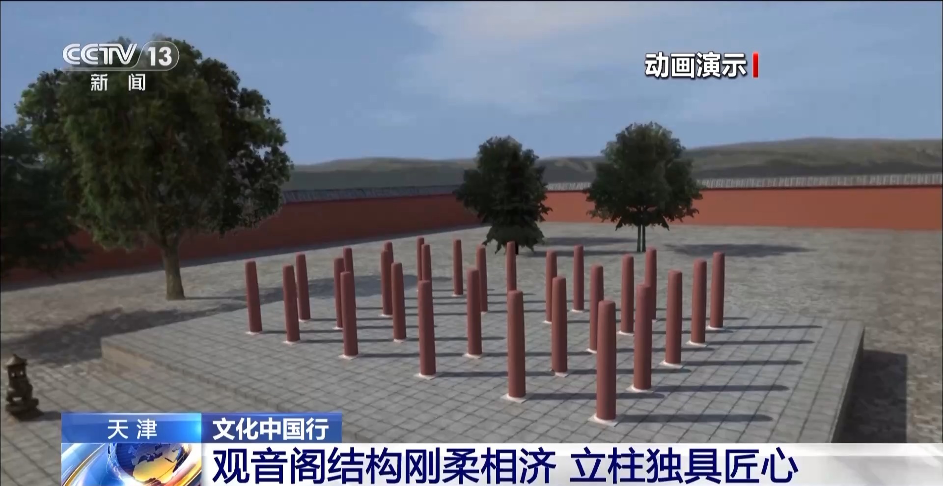 蓟州区文化遗产保护中心副研究馆员 宋淑云:流传着一个传说,就是乾隆皇帝他在行宫内午睡,有一天他做梦,梦到大阁屋檐倒塌砸到了行宫,所以醒来以后他就命人在这个檐下支了八根柱子。