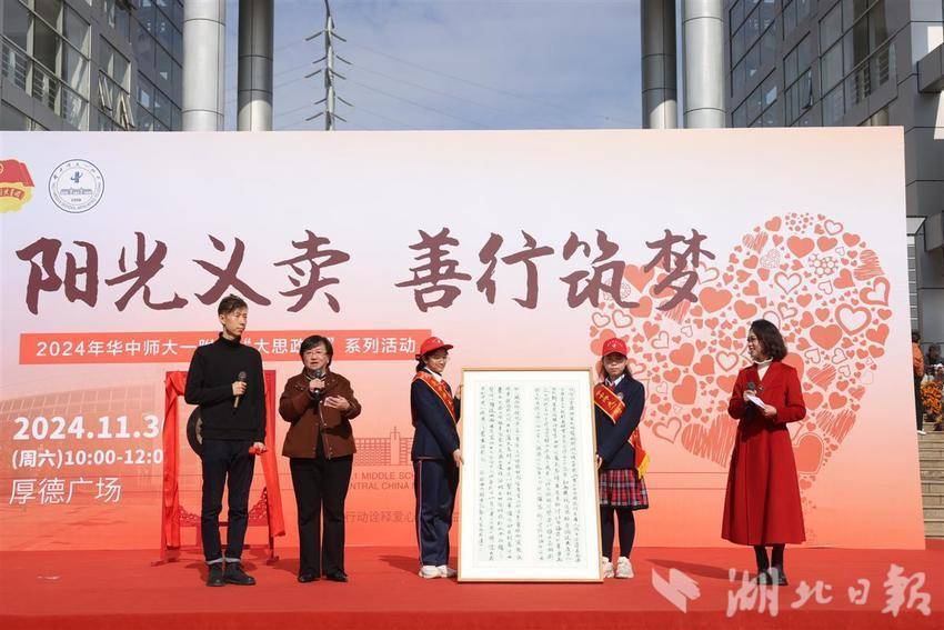 值得注意的是,本次的“阳光义卖”还结合了“百校百馆”大思政课主题活动,华中师大一附中对社会公众开放了校史馆和科技创新课程中心,邀请华中师范大学、武汉大学和华中科技大学三所高校携手,为“大中小”学生共上一堂思政课,让更多贫困学生感受爱的温暖。