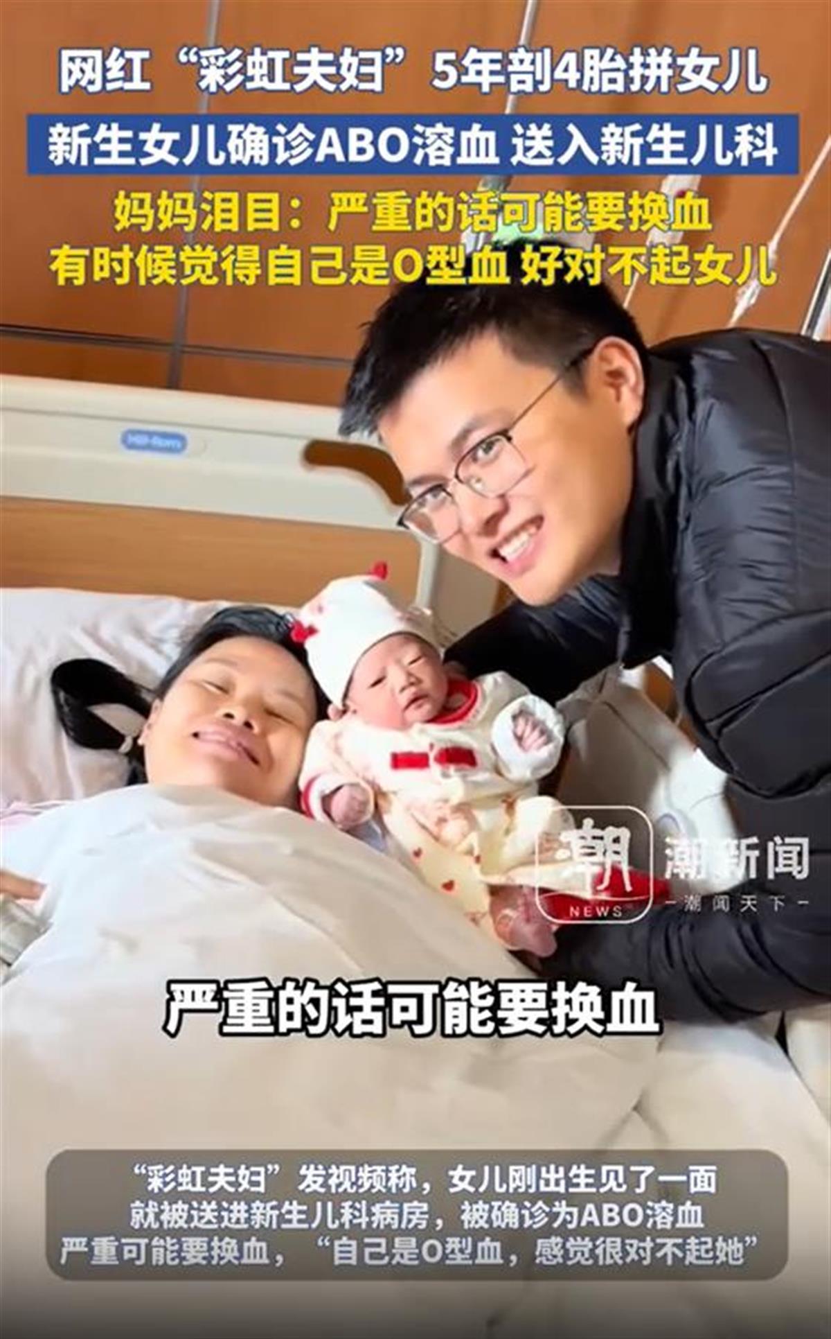 官宣产女喜讯后,12月1日,千万粉丝网红“彩虹夫妇”再发动态,称女儿被确诊为ABO溶血。