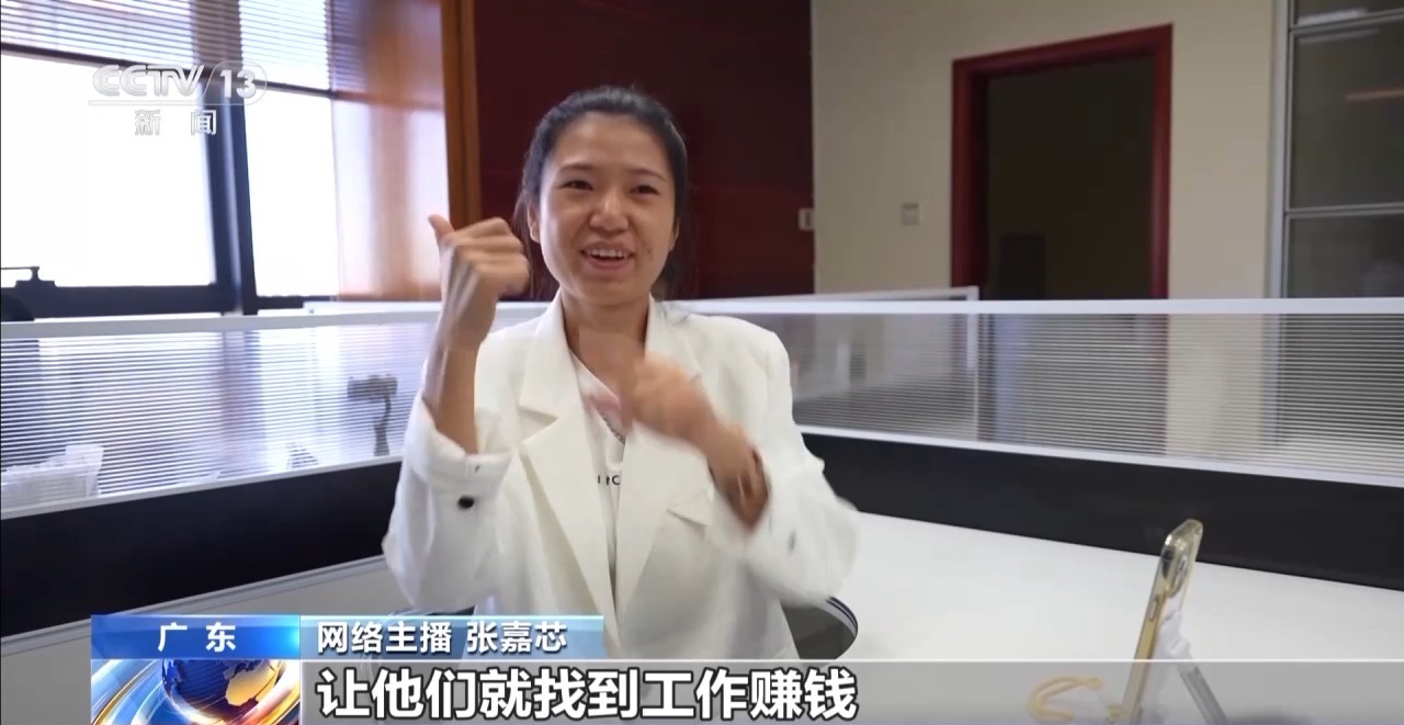 网络主播 张嘉芯:我们聋人找工作是很不容易的,(我的工作)能够帮助更多像我一样的伙伴找到工作,挣钱改善自己的生活。让我觉得生活更加精彩。