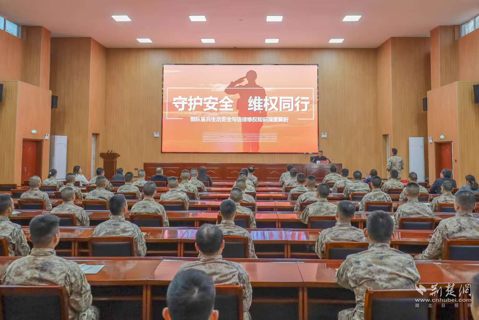 荆楚网(湖北日报网)讯(通讯员 舒威、李禅)在国家宪法日即将来临之际,为推动双拥工作向基层延伸,围绕驻区部队依法治军建设需要,12月2日下午,武汉市江夏区双拥办联合区委依法治区办、区司法局、区退役军人事务局、区法学会、纸坊街道司法所、湖北光谷律师事务所到驻区部队开展“宪法宣传进军营 筑牢国防新长城”活动。