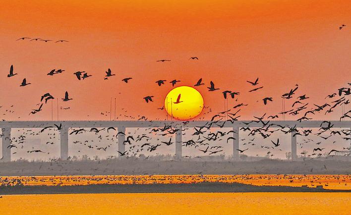 作为候鸟迁飞的的重要越冬地、停歇地和繁殖地,“千湖之省”湖北正迎来一场鸟的盛事。在网湖、沉湖、龙感湖等湖泊湿地,万鸟翔集,蔚为壮观。