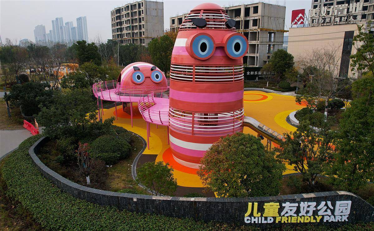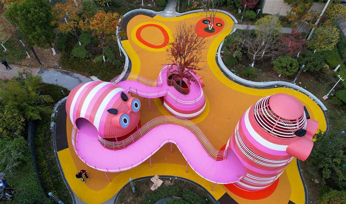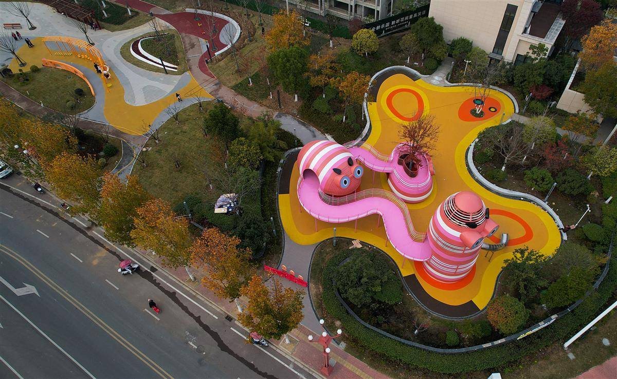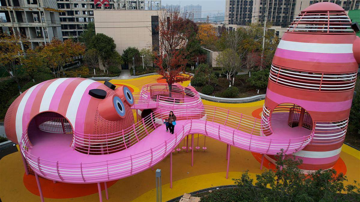 12月3日,鸟瞰近日建成开放了的儿童友好口袋公园,该公园位于武汉新洲区花朝大街北侧,面积达 7002平方米,呈带状长条形。儿童在这里欢笑嬉戏、年轻人在这里挥洒汗水、老人在这里舒展筋骨……小小口袋公园装满群众的大幸福。