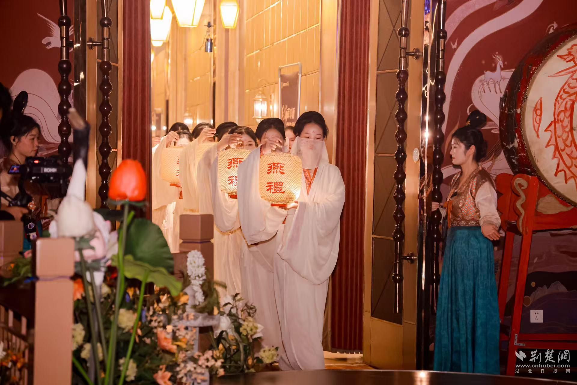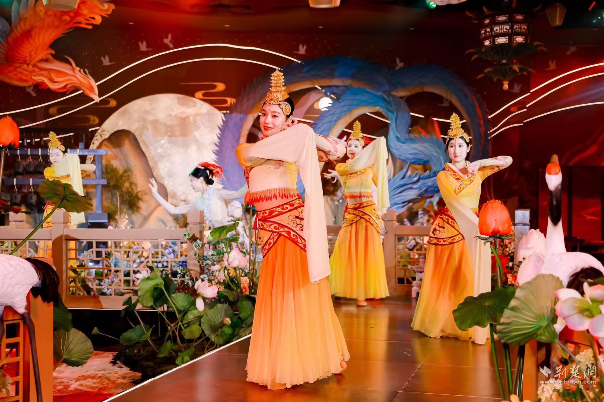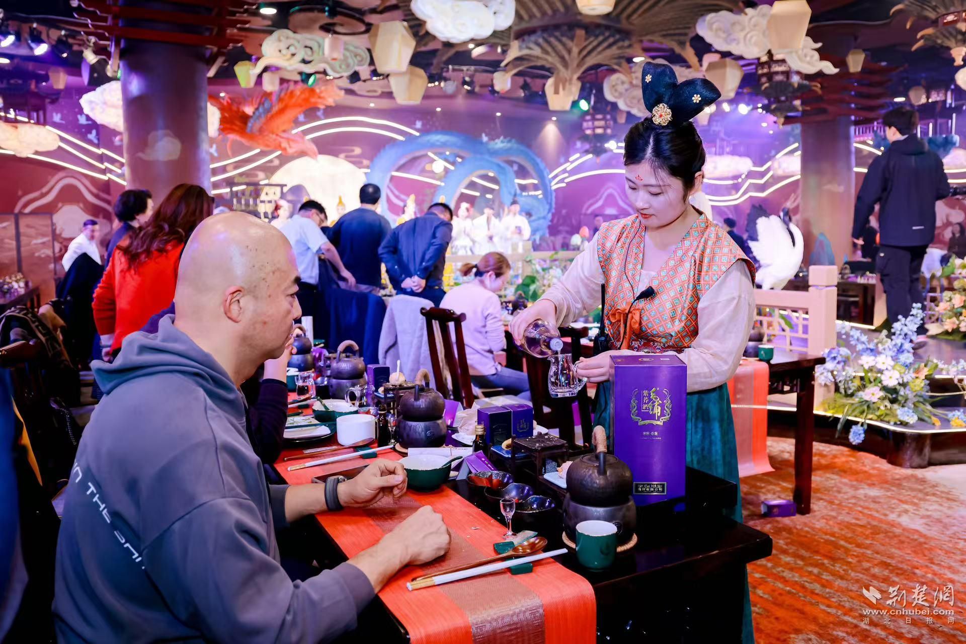 从代表楚人起源的凤凰图腾到编钟乐舞,从伯牙子期高山流水觅知音到赤壁古战场,从唐朝盛世诗仙李白和崔颢到武汉地标黄鹤楼……在艳阳天旺角(蓝天店)打造的湖北首家美食剧场“燕礼”中,楚商们一边品着楚菜,一边跟随着演员穿越千年,体验了一场浓郁的楚文化盛宴。