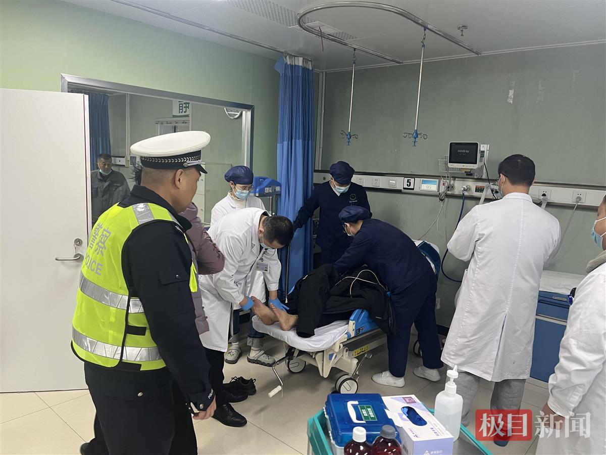 会合后,民警赵建深注意到车内躺着一名男子,神色痛苦,脸上、手上、衣服上都沾了鲜血,情况危急,他立即大声喊道:“打开双闪,跟在警车后面,我们为你开道!”辅警李德文迅速启动警车,开启警灯、拉响警笛,不断喊话,提醒沿途车辆注意避让,在确保沿途车辆安全的情况下,仅用时8分钟就将病人护送至医院。下车后,赵建深和李德文没有丝毫耽搁,他们迅速协助医护人员,小心翼翼地将患者抬上担架,并一路护送至急救室。