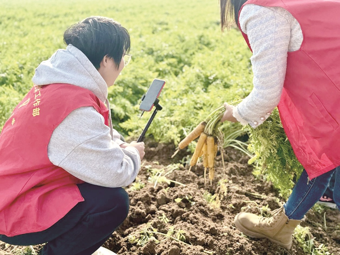 “我们现在所处的位置是应城市城中街道周陈村,这是刚刚从田里挖出来的胡萝卜,天然无污染!”直播镜头前,一垄垄“黄玉”胡萝卜长势喜人,主播们现场采摘、试吃,向直播间的网友们介绍胡萝卜的品质和口感。