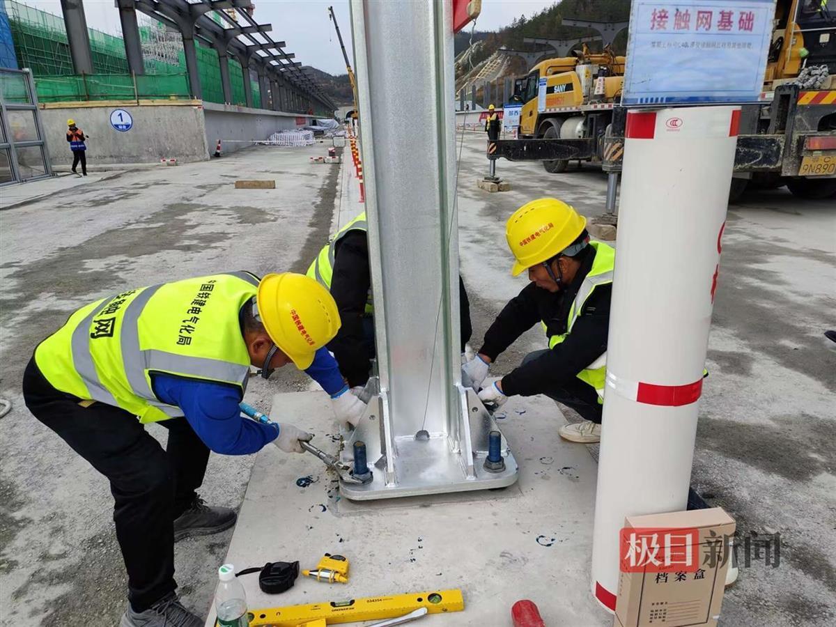 12月6日,从中国铁路武汉局集团有限公司传出消息,在西十高铁湖北段郧西站房现场,随着大型机械设备的吊装,高11米、重约1.8吨的接触网支柱与基础实现拼接完成。至此,西十高铁湖北段“强电”标接触网第一杆成功组立(“组立”指铁路建设中接触网的第一根支柱安装到位),标志着西十高铁湖北段“强电”工程全面启动,进入站前站后工程交叉施工阶段。