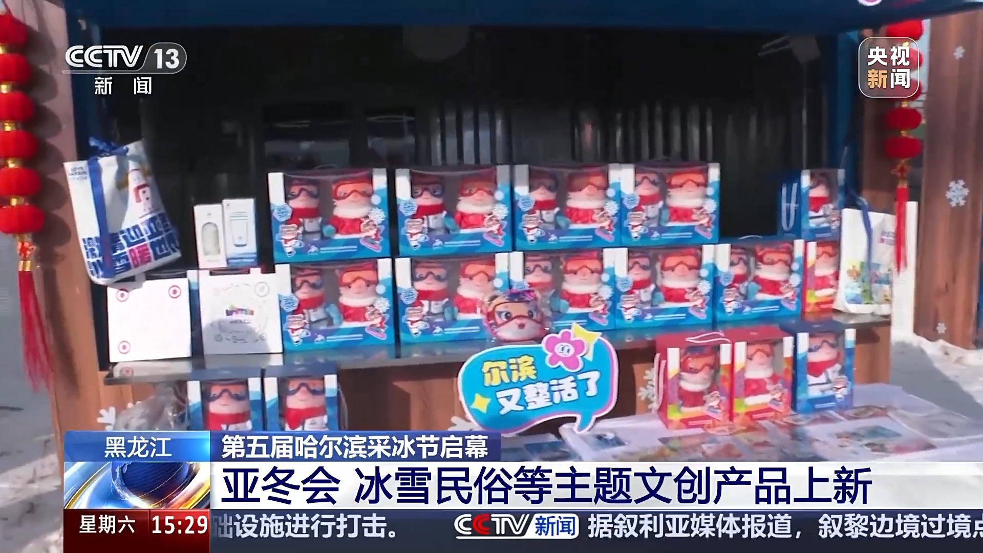现场还有很多文创产品商店,随着去年哈尔滨的爆火,哈尔滨的文创产品很受大家欢迎。今年哈尔滨的文创产品不断推陈出新,不少摊位正在售卖哈尔滨2025年第九届亚冬会的文创产品,包括亚冬会的吉祥物“滨滨”和“妮妮”。