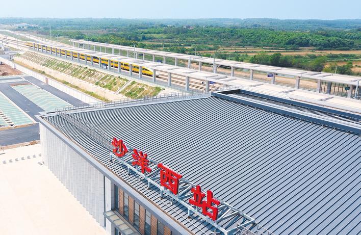 正在运行试验阶段中的荆荆高铁驶入沙洋西站。
