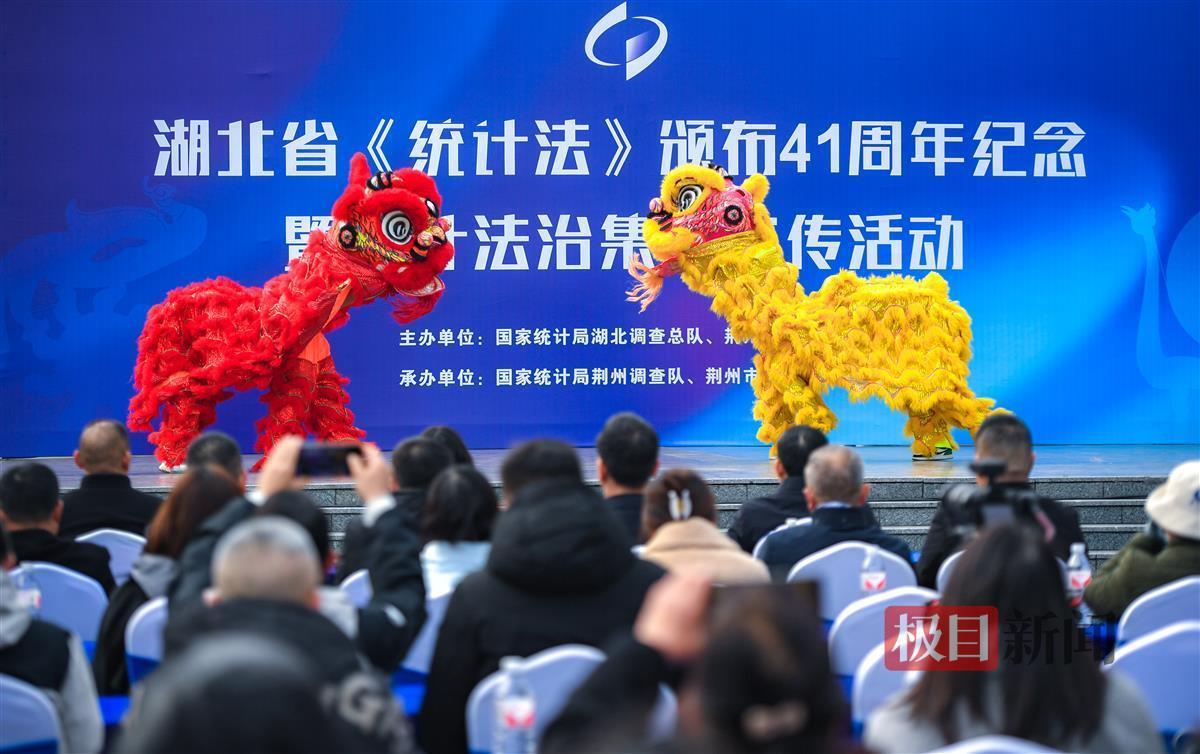 主舞台上演的统计法治主题节目更是精彩纷呈。长江大学学生们带来的舞龙舞狮表演,将活动现场氛围推向高潮。《不忘初心》《我和我的祖国》等歌曲脍炙人口,观众掌声不断。