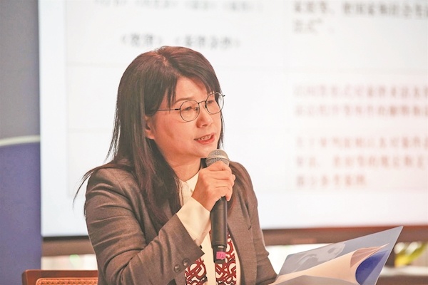 这次活动也是国家宪法日普法宣传活动,肖鹏副教授受邀担纲活动主持人,她笑称三位嘉宾为“秦简法韵三剑客”。