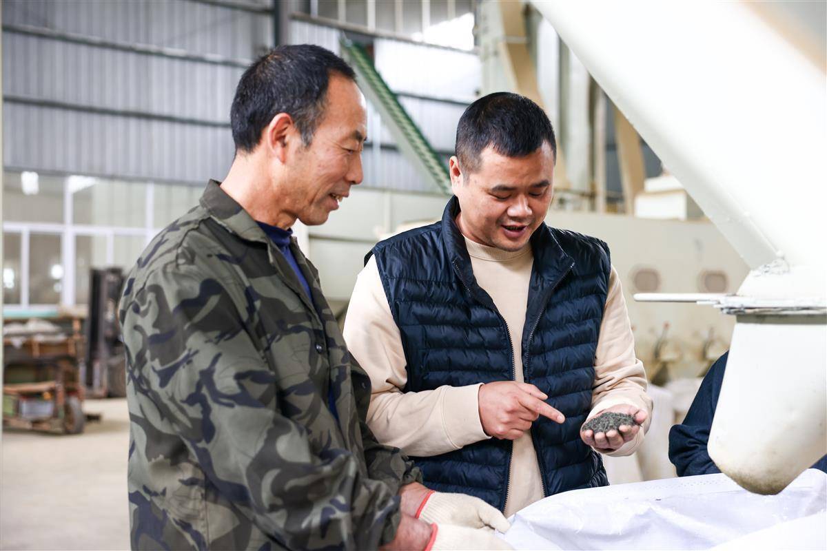 11月2日,湖北省青翠源茶业有限公司生产车间,刘珏(右)正在指导生产。(湖北日报全媒记者 蔡俊 摄)