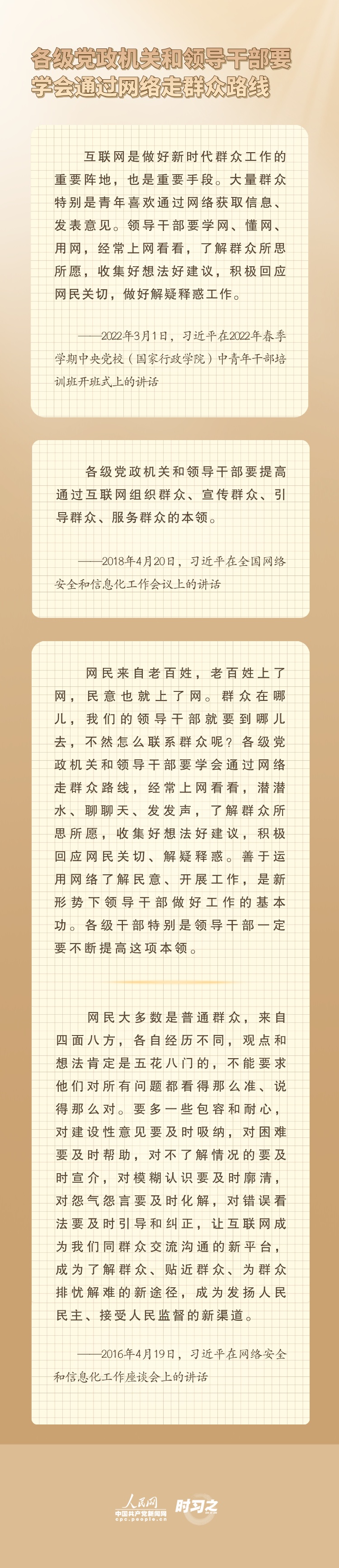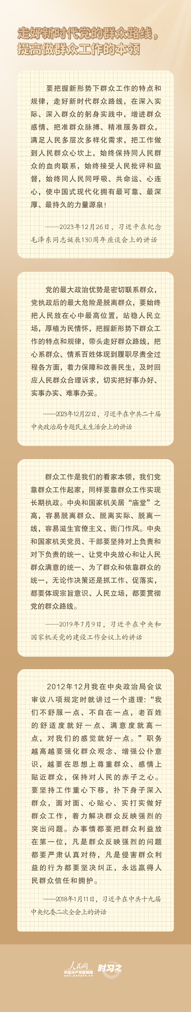 做好党的一切工作,必须走群众路线。习近平总书记指出,要“走好新时代党的群众路线,提高做群众工作的本领”。