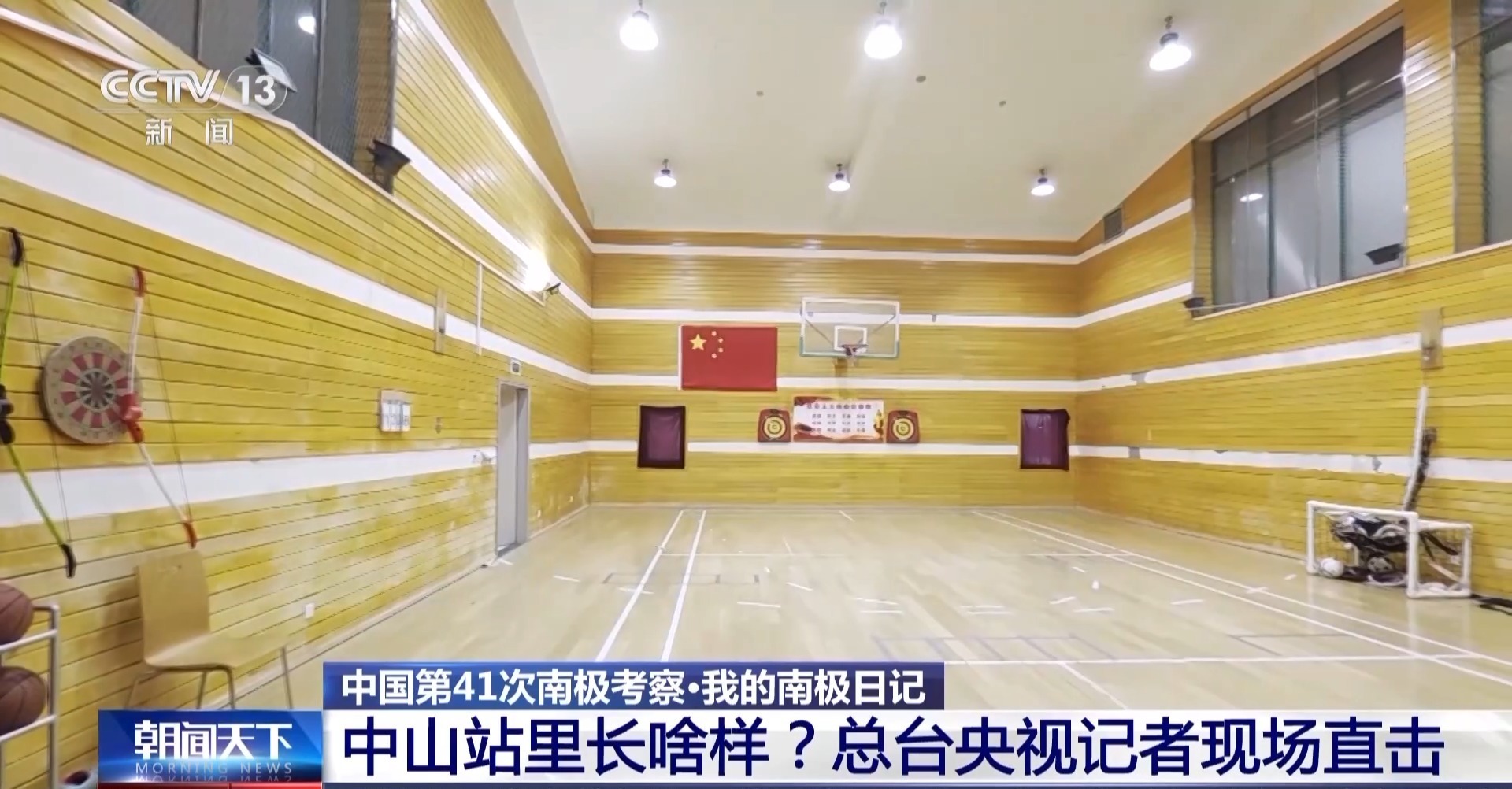 总台央视记者 王楠:这栋楼就是南极中山站的综合楼,里面包括科研办公室、通讯间、餐厅以及运动场地等等。而和综合楼用玻璃连廊连在一起的,就是越冬的宿舍楼。