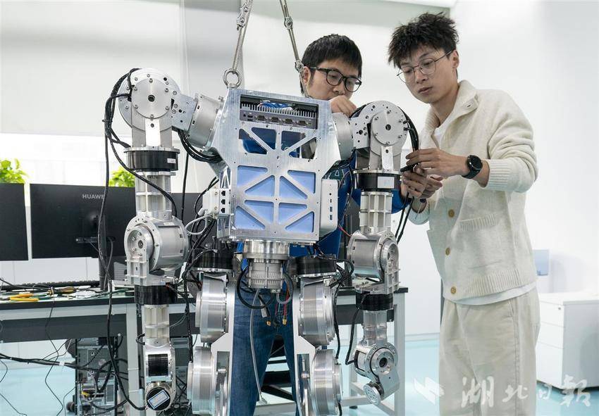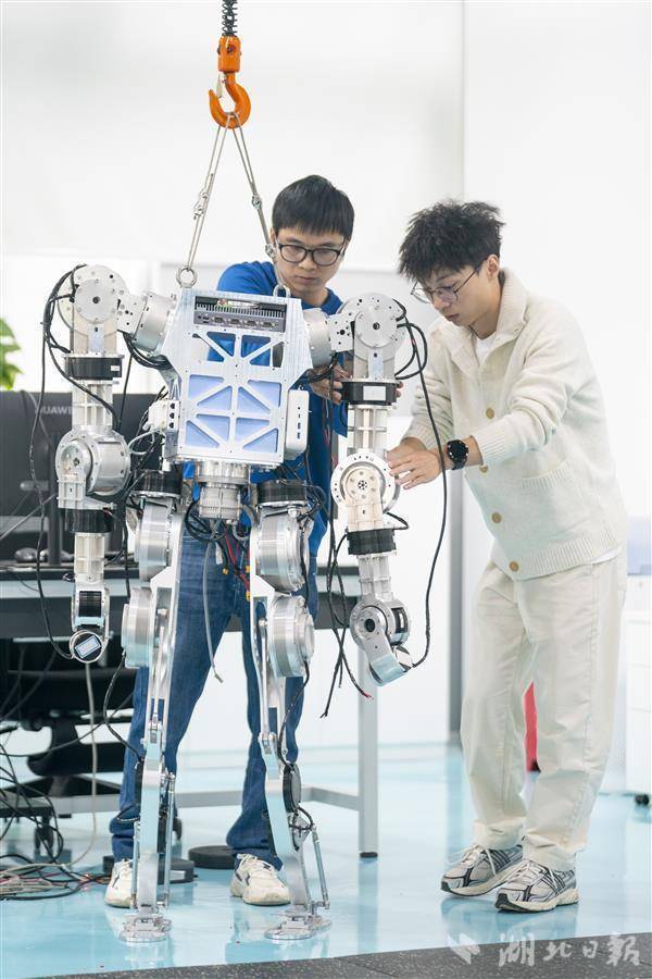 相比几个月前记者初见它时,如今的“大壮”步态明显更加稳健,双臂也可自如地抬举重物,还可以脱离吊轨在实验室内快步行走一周。