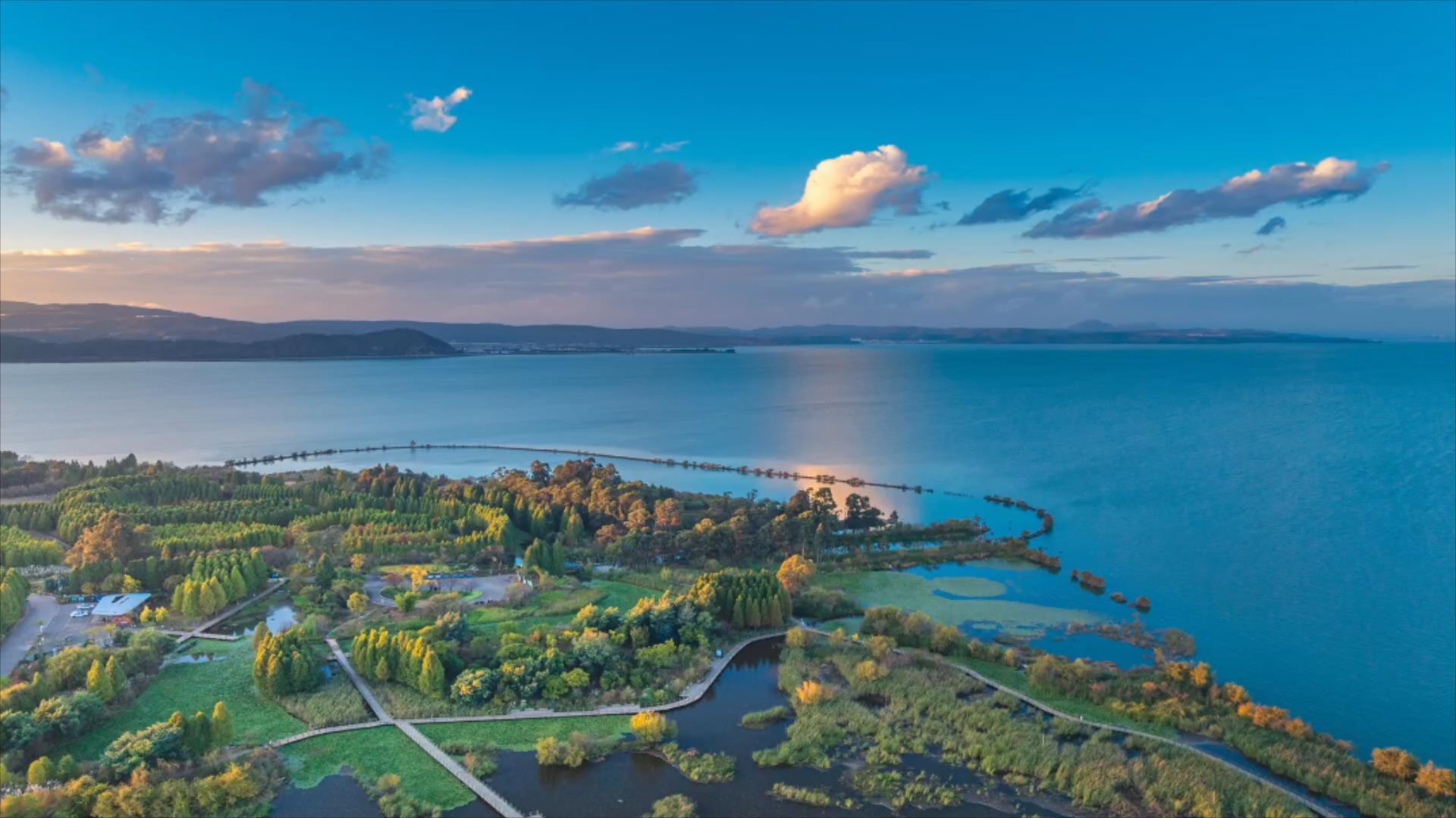 初冬时节,云南晋宁南滇池国家湿地公园风光旖旎。
