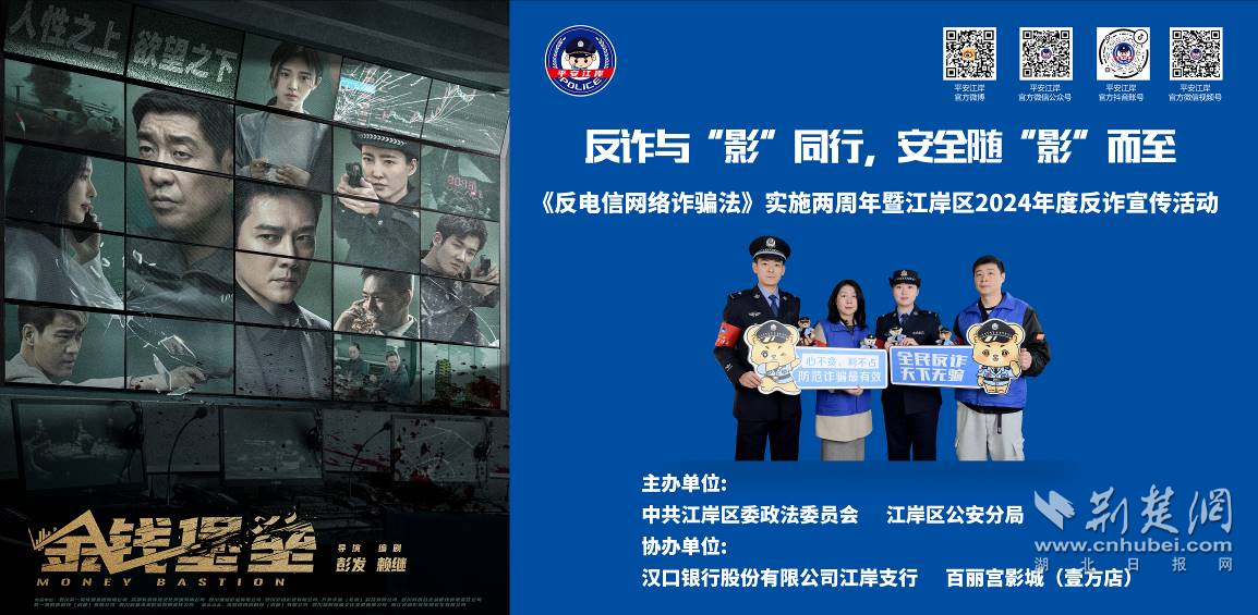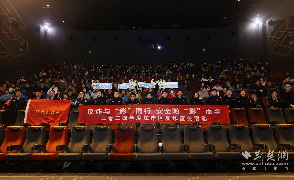 荆楚网(湖北日报网)讯(通讯员 岸公暄)“没想到今天在电影院有这么大的惊喜,既能看到反诈电影,又能学到反诈知识,这次来得值!”在《中华人民共和国反电信网络诈骗法》实施两周年之际,武汉江岸公安走进影城开启了一场反诈电影与反诈宣传的跨界合作,现场群众纷纷点赞这样的反诈宣传形式既新颖又实用。