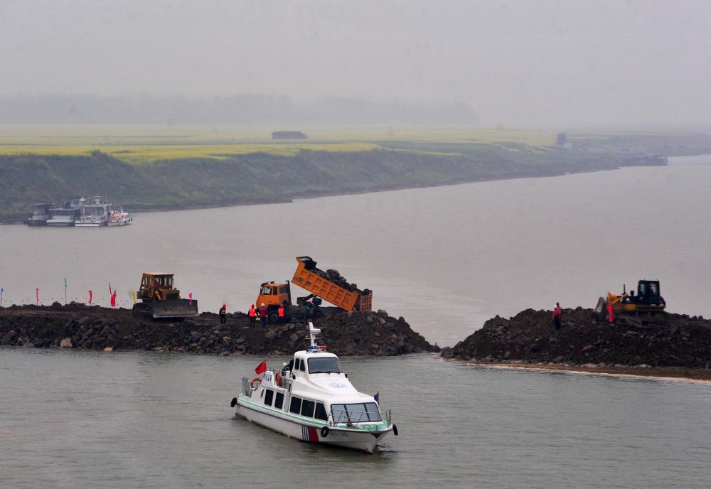 2013年3月22日拍摄的南水北调中线兴隆枢纽截流现场。新华社记者 肖艺九 摄