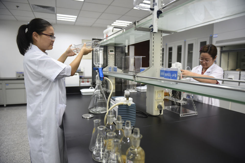 2017年8月18日,检测人员在南水北调中线建管局天津水质监测中心工作。新华社记者 鲁鹏 摄