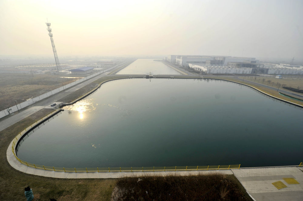 2014年12月27日,长江水流入天津滨海新区津滨水厂的调节池内。当日,天津市南水北调中线工程正式通水。新华社记者 岳月伟 摄