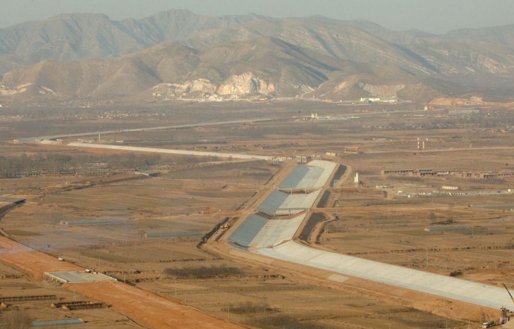2008年2月29日在河北省唐县拍摄的建设中的南水北调中线京石段工程。新华社记者 巩志宏 摄