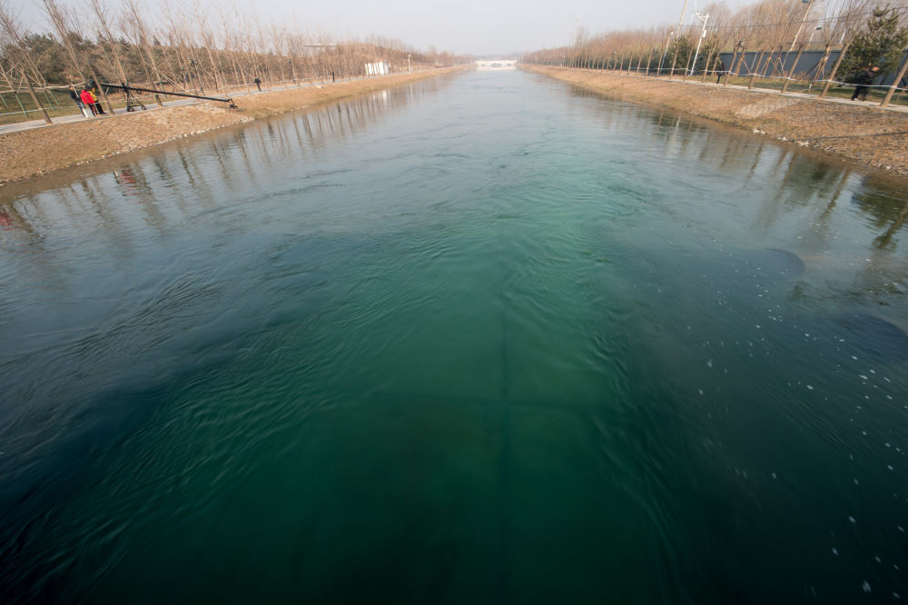 2014年12月27日拍摄的通水后的南水北调中线一期工程总干渠终点团城湖明渠。当日,南水北调中线一期工程总干渠终点团城湖明渠开闸放水,北京市南水北调工程正式通水。新华社记者 张宇 摄