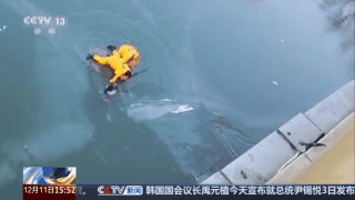 此时,又有2名消防员穿戴好装备跳入冰河中。4名消防员,有2名负责保护女孩的安全,另外2名消防员则用拳头不断击打冰面,选择能够承担大家体重的上冰位置。